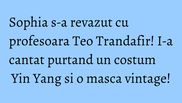 “ Teo m-a incurajat sa fiu eu insami indiferent de ceea ce zice lumea, sa cred in mine si in mesajul meu si sa nu fac deloc compromisuri. Este o persoana fantastica, cu pofta de viata si un optimism debordant. Pentru mine este un exemplu de urmat ”, spune Sophia.