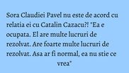 Claudia: Nu stim ce se va intampla. Suntem sinceri, tineri, liberi. Peste patru luni se pot intampla multe. El poate dezvolta sentimente sincere pentru o alta colega.