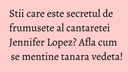 Unul din lucrurile care sunt evidente la Jennifer Lopez este faptul ca nu imbatraneste. Sau cel putin tenul ei arata exact ca atunci cand s-a lansat. Iata la ce trucuri apeleaza vedeta!