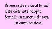 Moda este o limba universala pe care fiecare o intelege toata lumea, insa fiecare se exprima in propriul mod! Uite ce stiluri abordeaza fashionistele, in diferite colturi ale lumii!