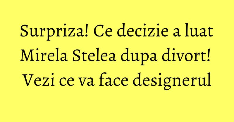 Mirela Stelea are nevoie de o pauza, acum, dupa ce apele s-au mai linistit, proiectele in mare s-au finalizat. Pana acum, timp de cateva saptamani, Mirela a muncit la cateva proiecte, de dimineata pana seara, si a raspuns tuturor intrebarilor despre divort. Si i-a cam ajuns. Acum, designerul vrea sa plece intr-o mini-vacanta ca sa se relaxeze si sa se rupa putin de nebunia din Capitala.