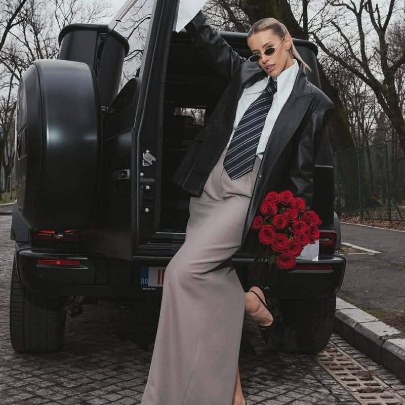 Aceasta a făcut o ședintă foto de excepție lângă ea, potrivindu-și și hainele cu nuanța acesteia.Cei doi urmează să se mute într-o casă nouă