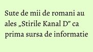O medie de peste 300.000 de romani au urmarit ieri “Stirile Kanal D” de pranz, in intervalul orar mai sus mentionat.