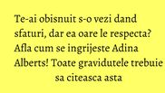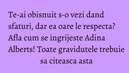 Te-ai obisnuit s-o vezi dand sfaturi, dar ea oare le respecta? Afla cum se ingrijeste Adina Alberts! Toate gravidutele trebuie sa citeasca asta