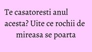 Acum, multe dintre mirese incep sa isi caute rochiile potrivite, calculandu-si bugetul si proband cat mai multe tinute. Inspiratia pentru rochiile de mireasa de anul acesta vine din anii '20.