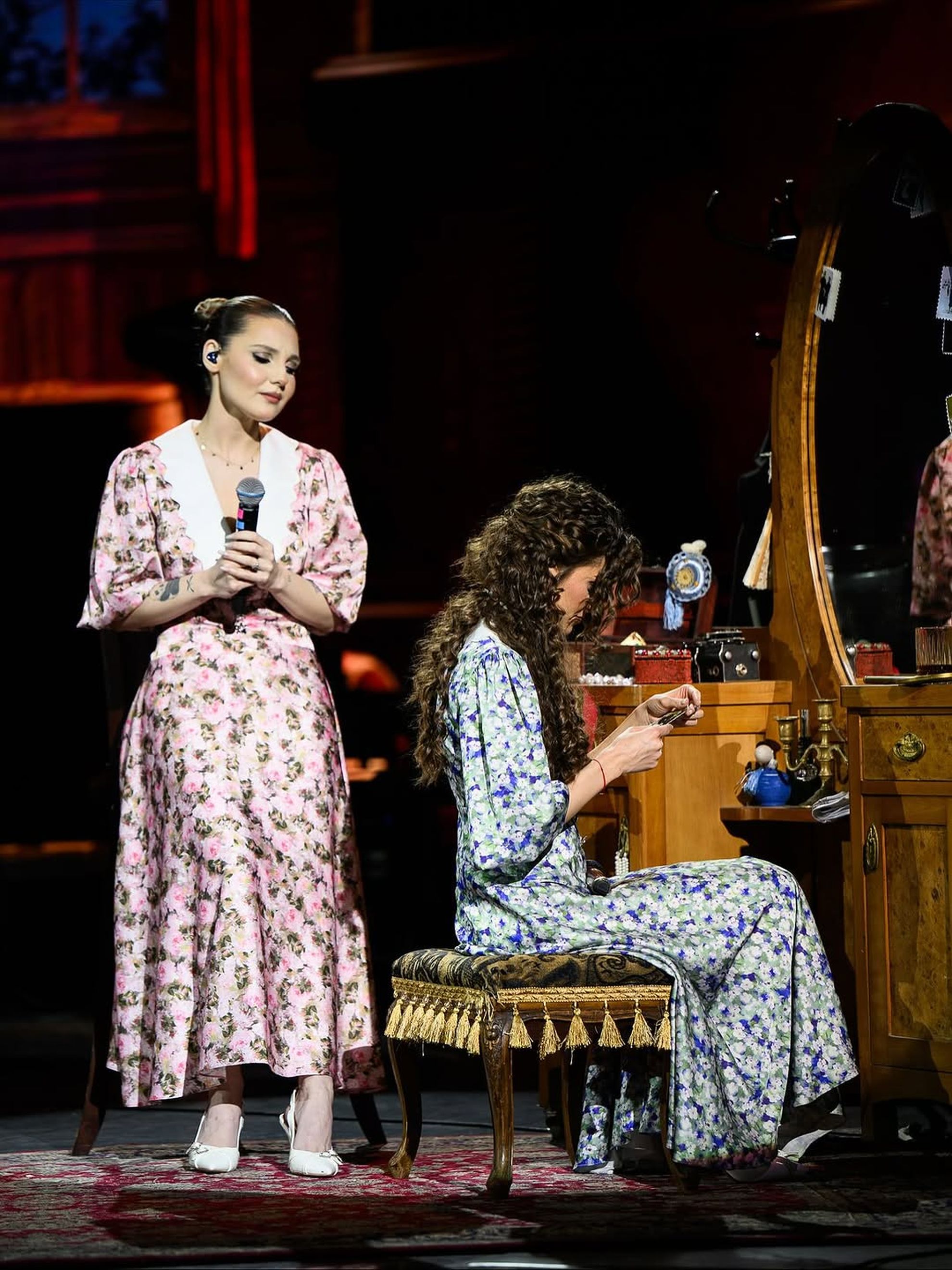 Pică o piesă, după care se duc toate. Și la noi cam așa a fost. Am cunoscut-o și de atunci parcă au început să mi se lege lucrurile. Nici nu e nevoie să facă nimic, de asta cred că a apărut în viața mea ca să mă potențeze. Mă uit la ea și știu ce am de făcut pe scenă, în studio, peste tot. Drumurile noastre s-au separat. Nu de mult, în afara acestui spectacol, dar ce bine e să ai un prieten care să te cunoască, care să știe să-ți fie sprijin și pe scenă, dar și în afara ei.