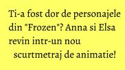 Scurtmetrajul animat readuce vocile care au dat viata personajelor din “Frozen”.