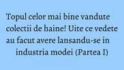 In timp ce unele colectii sunt aspru criticate, altele nu doar ca sunt bine primite de criticii de moda ci si vand foarte bine. Iata care sunt cele mai de succes colectii care poarta semnatura unor vedete.