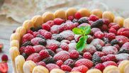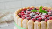 Mod de preparare – Tort cu cremă de vanilie, îmbrăcat în pișcoturi cu căpșune și fructe de pădure deasupra