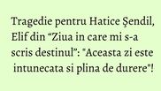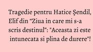 "Aceasta zi este intunecata. Aceasta zi este plina de durere. Este indeajuns! Sa fie asta sfarsitul! Sa se termine odata! Sa se termine durerile de suflet si cei care provoaca durerile de suflet sa-si gaseasca sfarsitul. Condoleante tuturor! Dumnezeu sa ii odihneasca si ranile sa se vindece!", a scris Hatice pe Instagram.