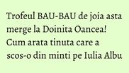 Este joi si Iulia Albu a luat tinutele vedetelor la "puricat". In aceasta saptamana, Doinita Oancea primit trofeul BAU.