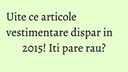 Ne apropiem cu pasi repezi de intrarea in 2015 si nu numai anul trebuie sa se innoiasca, ci si garderoba ta. Specialistii iti arata niste tinute care cu siguranta nu vor mai fi deloc cool in 2015.