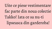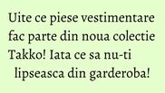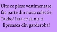 Noua colectie Takko ne pregateste pentru momentul in care piesele de vara, rochiile, fustele si pantalonii scurti, vor fi inlocuite de piesele sezonului rece.