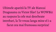 Ultimele aparitii televizate ale celor doi fosti parteneri au fost bineinteles la Kanal D. Pe 8 martie, Bianca Dragusanu si Victor Slav au venit amandoi la WOWBiz si au raspuns la intrebarile indiscrete ale Andreei Mantea.