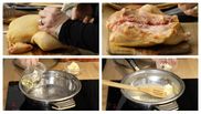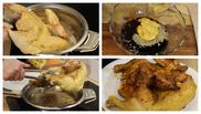 „ Am aici un pui și o să-l cosmetizez puțin înainte de a-l pune la cuptor. O să-i tai un pic vârfurile de la aripi. O să-l tai pe piept, în două și o să presar sare, piper, mirodenii. Eu o să pun sare și piper și o să-l pun la prăjit într-o tigaie în care o să pun mai întâi uleiul la încins, ulei vegetal și unt.