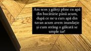 "Am scos trei găleți pline cu apă din bucătărie până acum, după ce ne-a curs apa din tavan, acum avem inundație, și cum strâng o găleată, se umple iar.