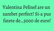 Valentina Pelinel este constienta ca aspectul fizic ii aduce zeci de mii de euro, asa ca, de curand, si-a aranjat de curand si dantura. In urma cu doua saptamani, fostul manechin si-a schimbat zambetul cu ajutorul celor mai bune fatete, realizate la clinica medicului stomatolog Valentin Raducanu, acelasi specialist la care au apelat si alte vedete precum Cristina Spatar, Irinel Columbeanu, Diana Dumitrescu sau Roxana Ciuhulescu.