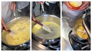 Începeți prin a topi untul, zahărul și un praf de sare într-o crăticioară cu apă. Adăugați făina și amestecați bine până când nu mai rămâne niciun cocoloș.