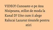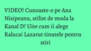 Ana Nisipeanu este stilist de moda la Kanal D, iar talentul sau vine in ajutorul vedetelor care apar zi de zi la televizor.