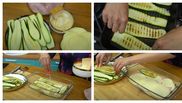 „ În primul rând, avem nevoie de acești zucchini, pe care eu i-am tăiat pe o răzătoare mandolină.