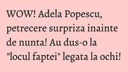 Pe scurt, Adela Popescu a fost “luata” pe sus, legata la ochi si dusa intr-o locatie secreta unde se stransesera toate prietenele apropiate ale ei, gasca fetelor organizandu-i o petrecere secreta de pomina si cum nu s-a mai vazut.