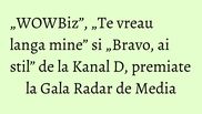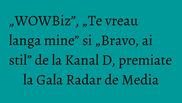 Andreea Mantea si Madalin Ionescu, prezentatorii show-ului ”WOWBiz”, au urcat pe scena pentru a ridica premiul pentru Cea mai buna emisiune TV.