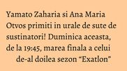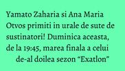Yamato Zaharia si Ana Maria Otvos au fost unii dintre cei mai puternici concurenti de la “Exatlon”, acestia realizand performanta de a face fata cu brio traseelor dificile din Republica Dominicana. Din pacate pentru Razboinica Otvos, aceasta nu a reusit sa ajunga pana in finala “Exatlon”, ce se va disputa duminica aceasta, la ora 19:45, la Kanal D, concurenta fiind nevoita sa abandoneze competitia din cauza unei accidentari.