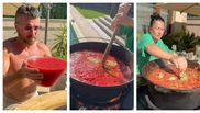 Pentru zacusca normală, ingredientele pe care le folosește vedeta TV sunt vinete, ardei, roșii, ceapă, toate tocate, pe care le pune într-o oală mare și le amestecă, alături de sare, piper, ulei și foi de dafin pentru gust.